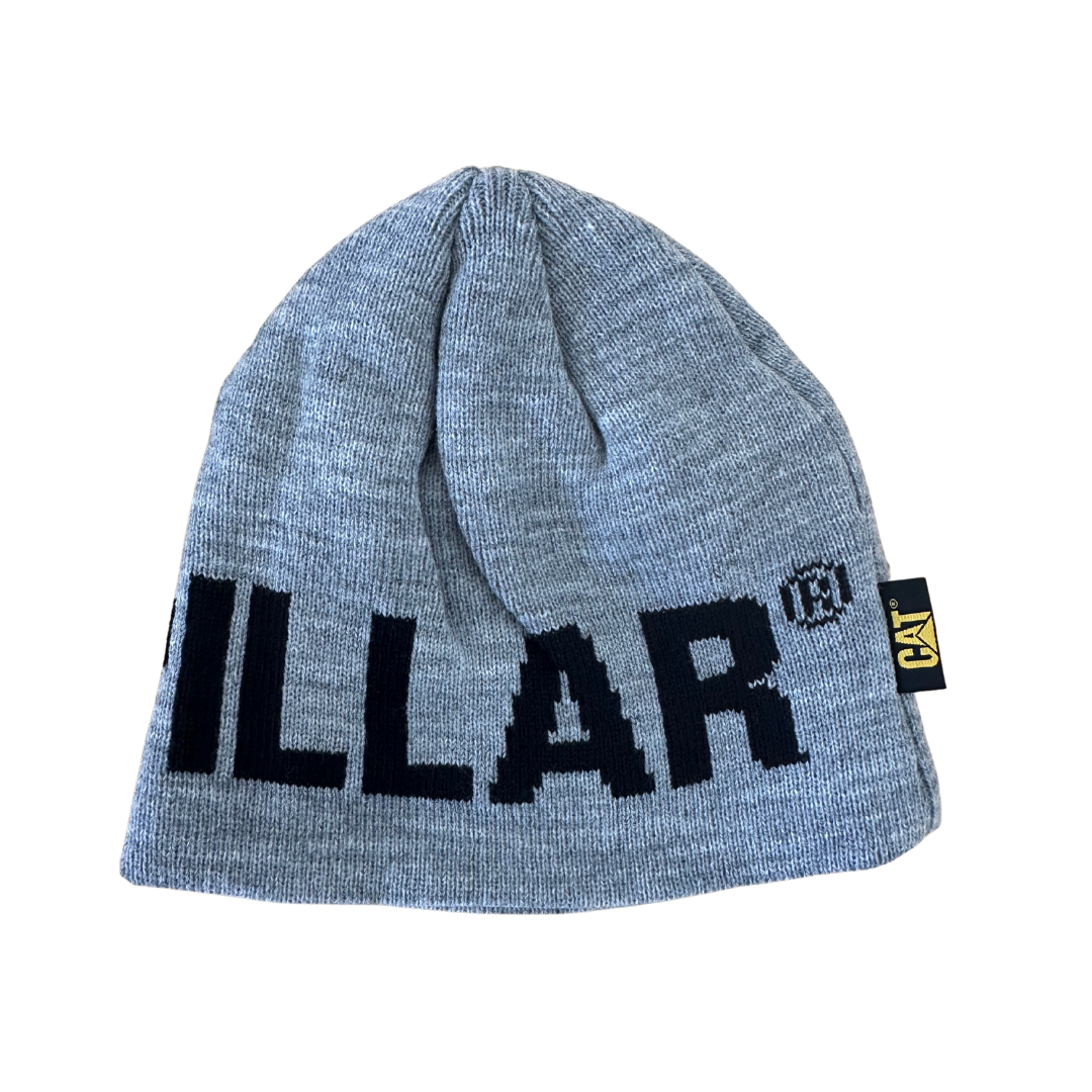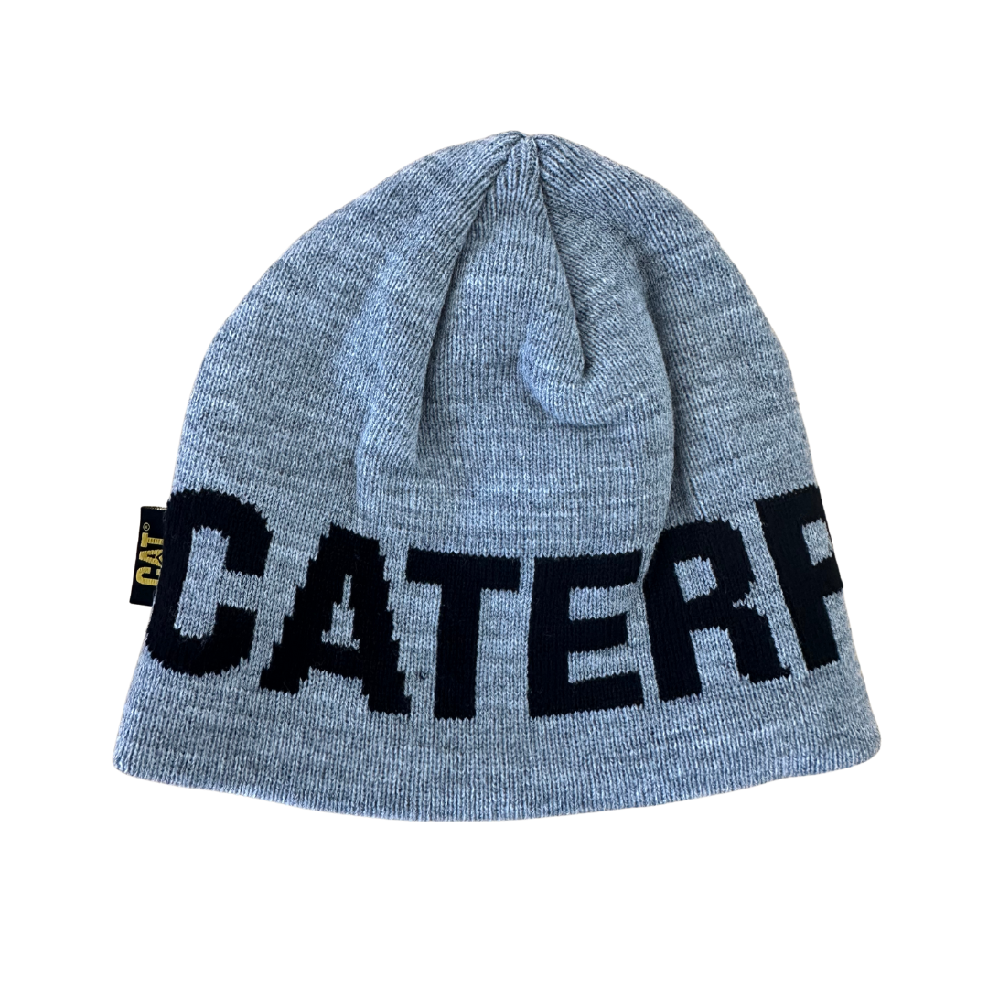 Grey Branded Beanie features Cat logo label and black Caterpillar knit-in text. Made from 100% Acrylic.