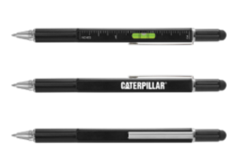 Precision twist action, multi-function aluminium ball pen. It has a stylus for use with touch screens which can be used on either end of the pen. It also has a ruler with both metric and imperial measurements, a spirit level and two screwdrivers inside the upper barrel. It has a black refill with 400 metres of German manufactured Dokumental ink and a tungsten carbide ball for improved writing quality.